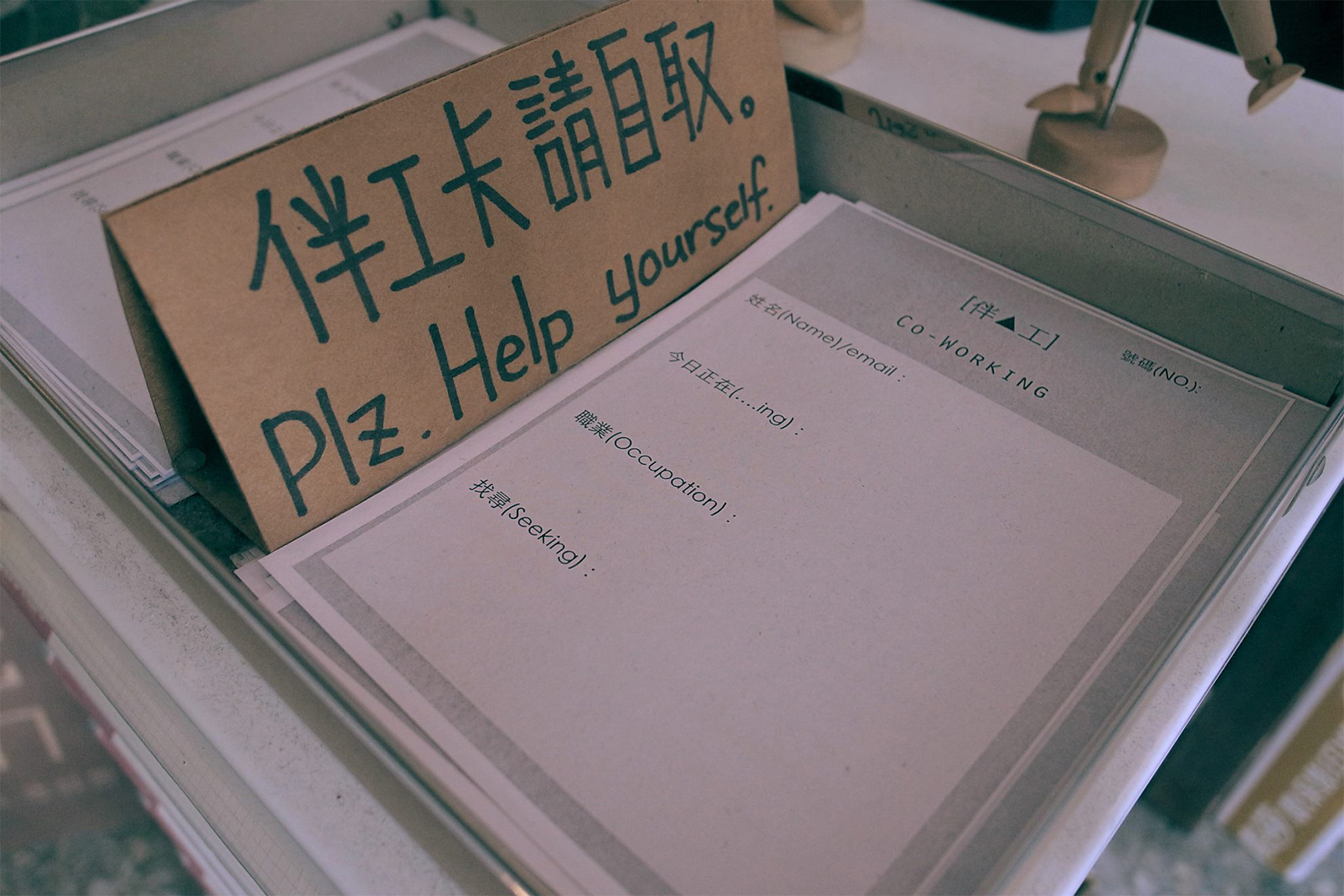 共同工作空間其中的核心之一在於交流,而為了解決台灣人普遍不習慣於主動認識朋友,而失去與各領域工作者交流機會的問題,混hun (Guting) 在其中設計創辦一套「伴工卡」作為交流機制,以「姓名/email」、「今日正在…」、「職業」、「找尋..」項目中配對資源需求,結合 Coworking 概念推廣的五階段計畫,轉換 Coworking space 於台北的在地性,並且突破空間上的概念差異,使來過的每一位埋下各式合作機會,也因此實踐更扎實的交流關係。