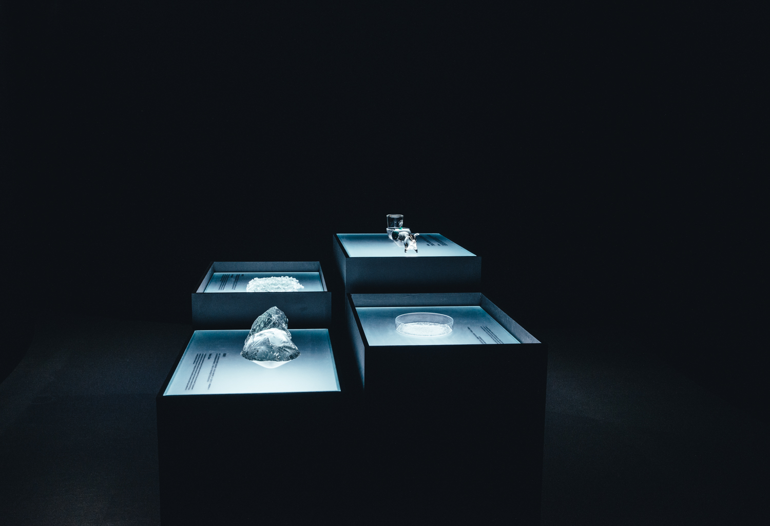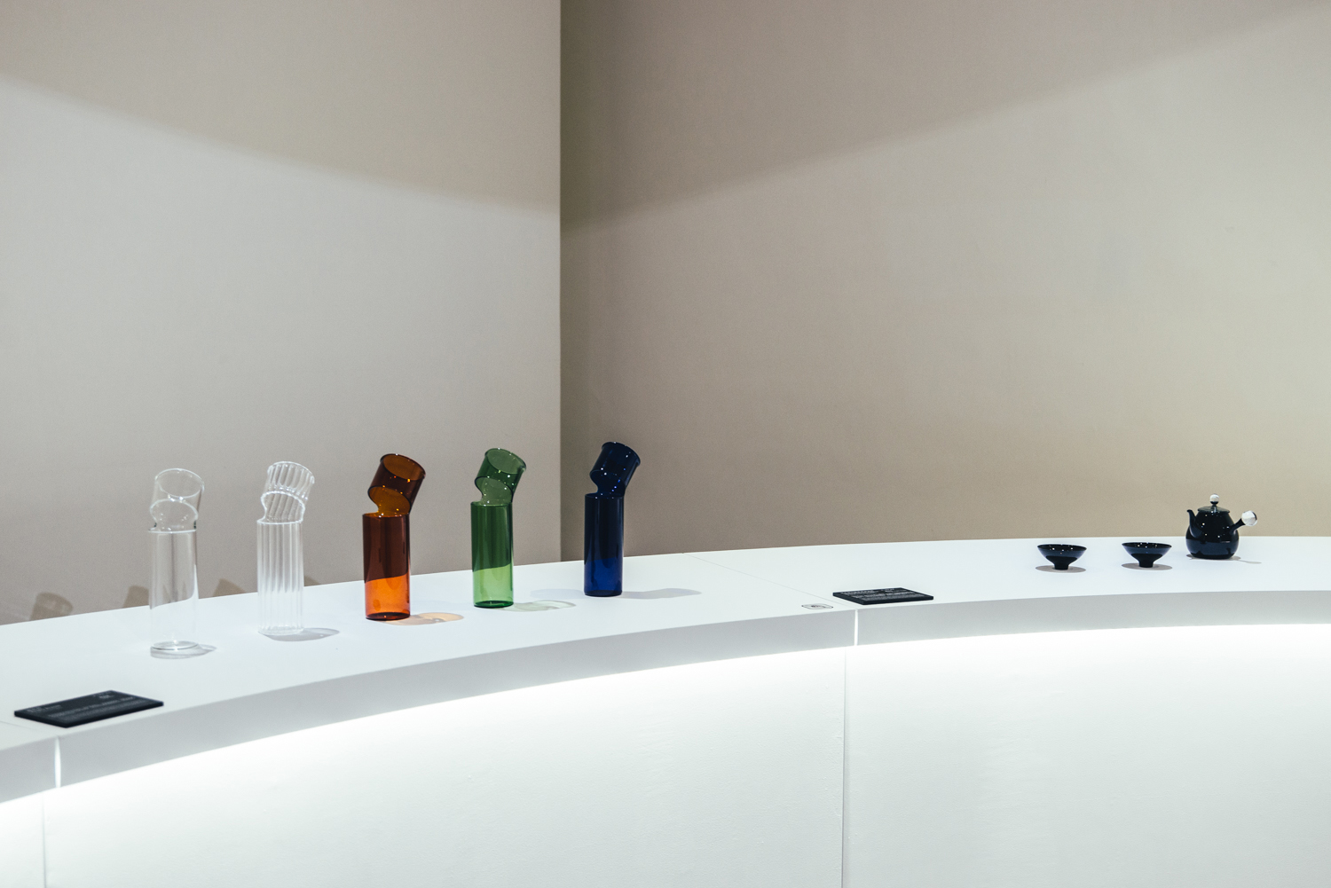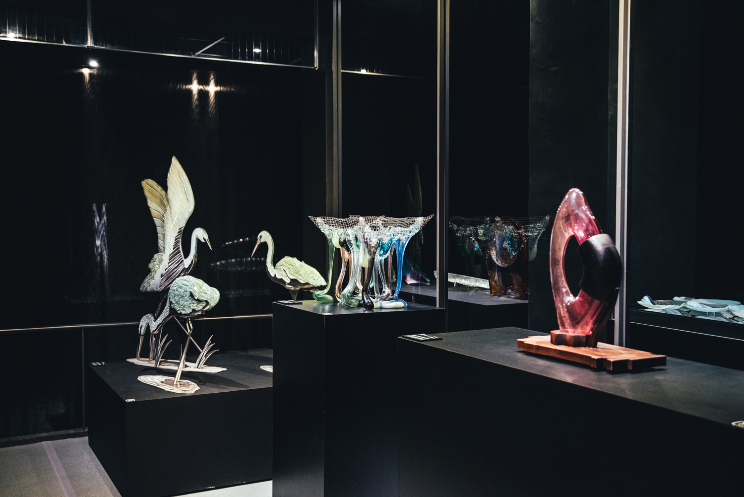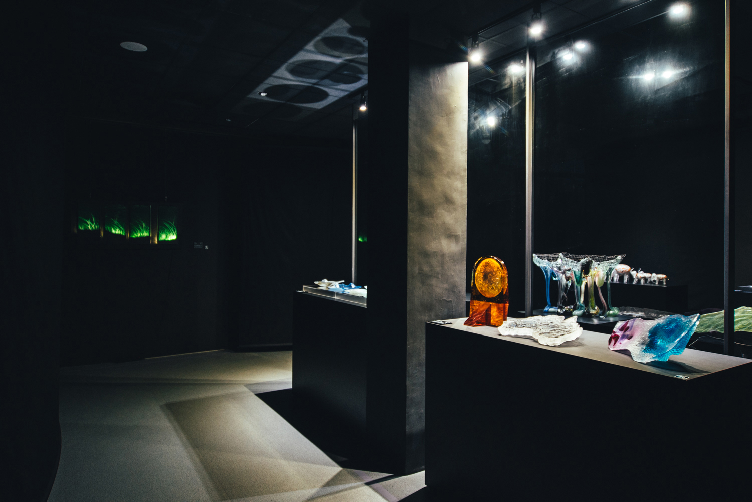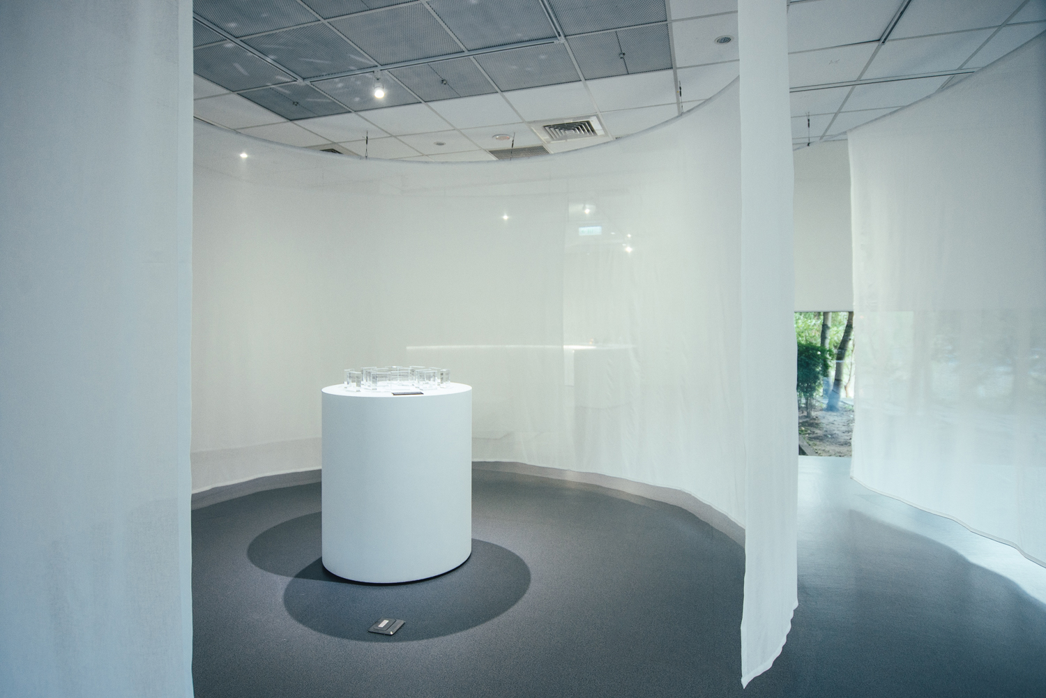 兩個主要展間一圓一方,象徵玻璃有稜角有圓滿、隨物賦形、或方或圓的特質;一黑一白,象徵玻璃、光與空間的溝通,也比喻破碎與重生,是永續的姿態。