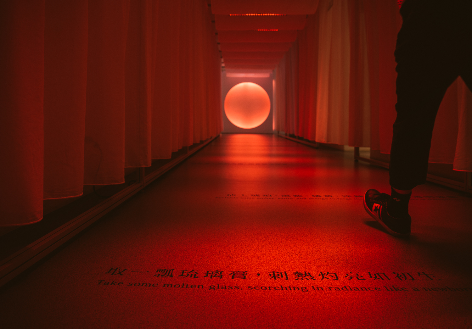 展場內兩個主要展館之間的通廊,模仿玻璃窯爐的意象,民眾即可聯想到玻璃職人的高溫日常,以及千錘百鍊而生的各種玻璃成品。