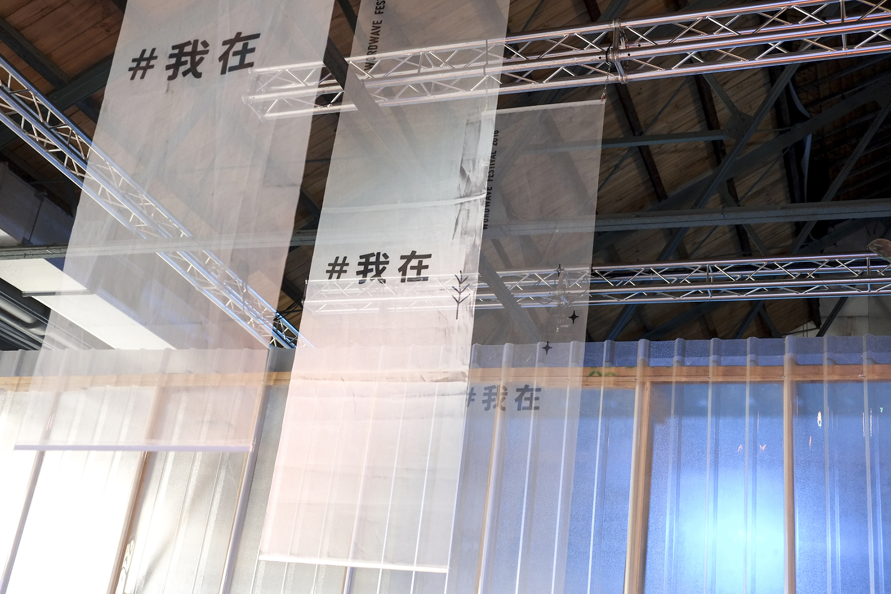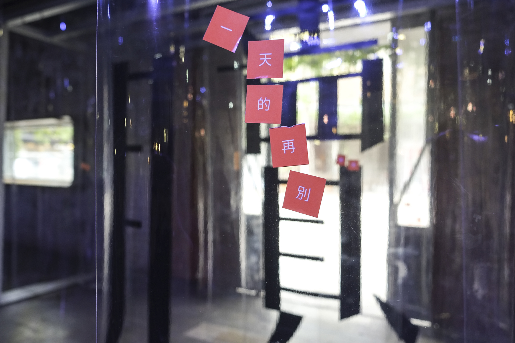 於出口處懸掛透明防水布條,並在布條上輸出「朗讀」合字,參觀者拿取提供的色彩字詞貼紙,於布條之上自由拼貼出自己的詩詞創作,創造自身對閱讀的詮釋。而此出口同時也象徵了朗讀城市與現實世界的接軌,透過造句互動,大眾穿越「朗讀」邊界時,也更加深了朗讀與生活的連結。