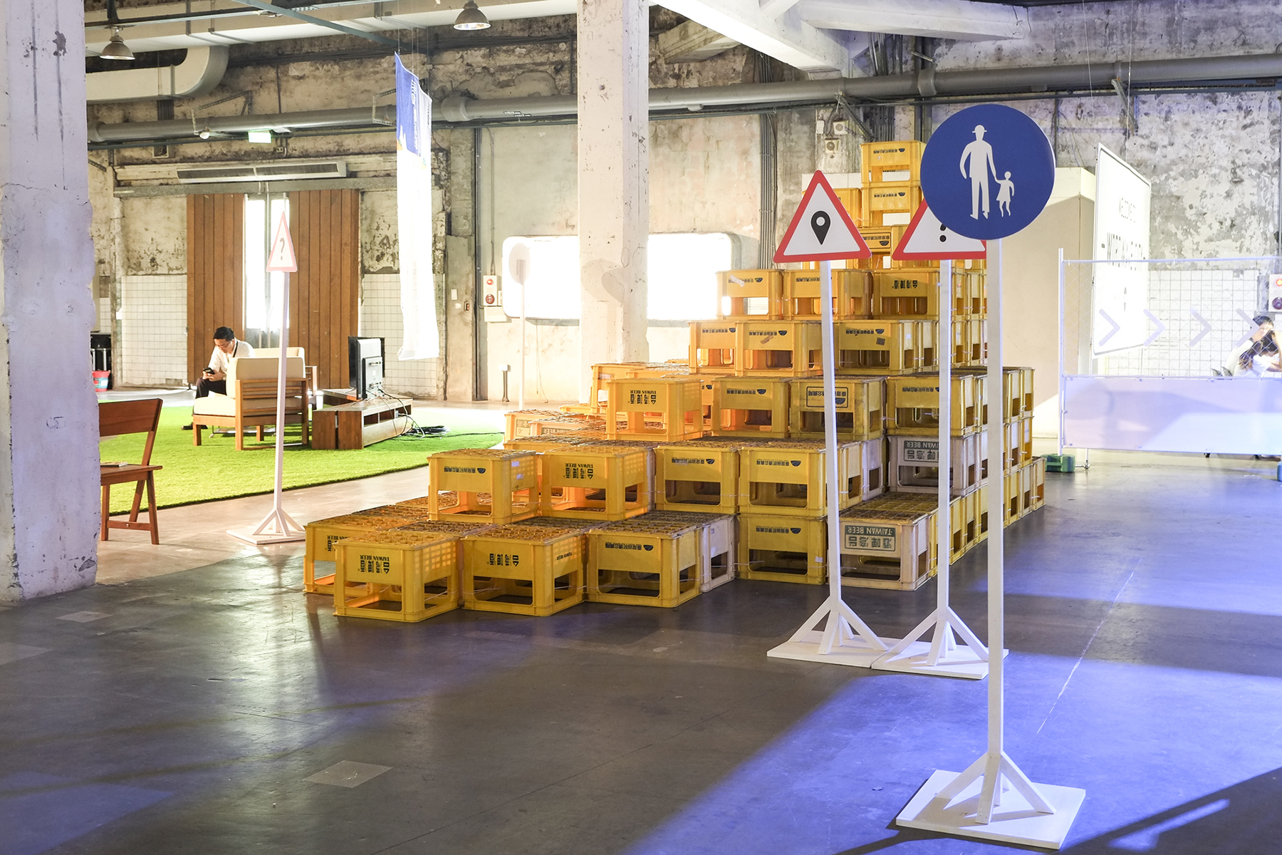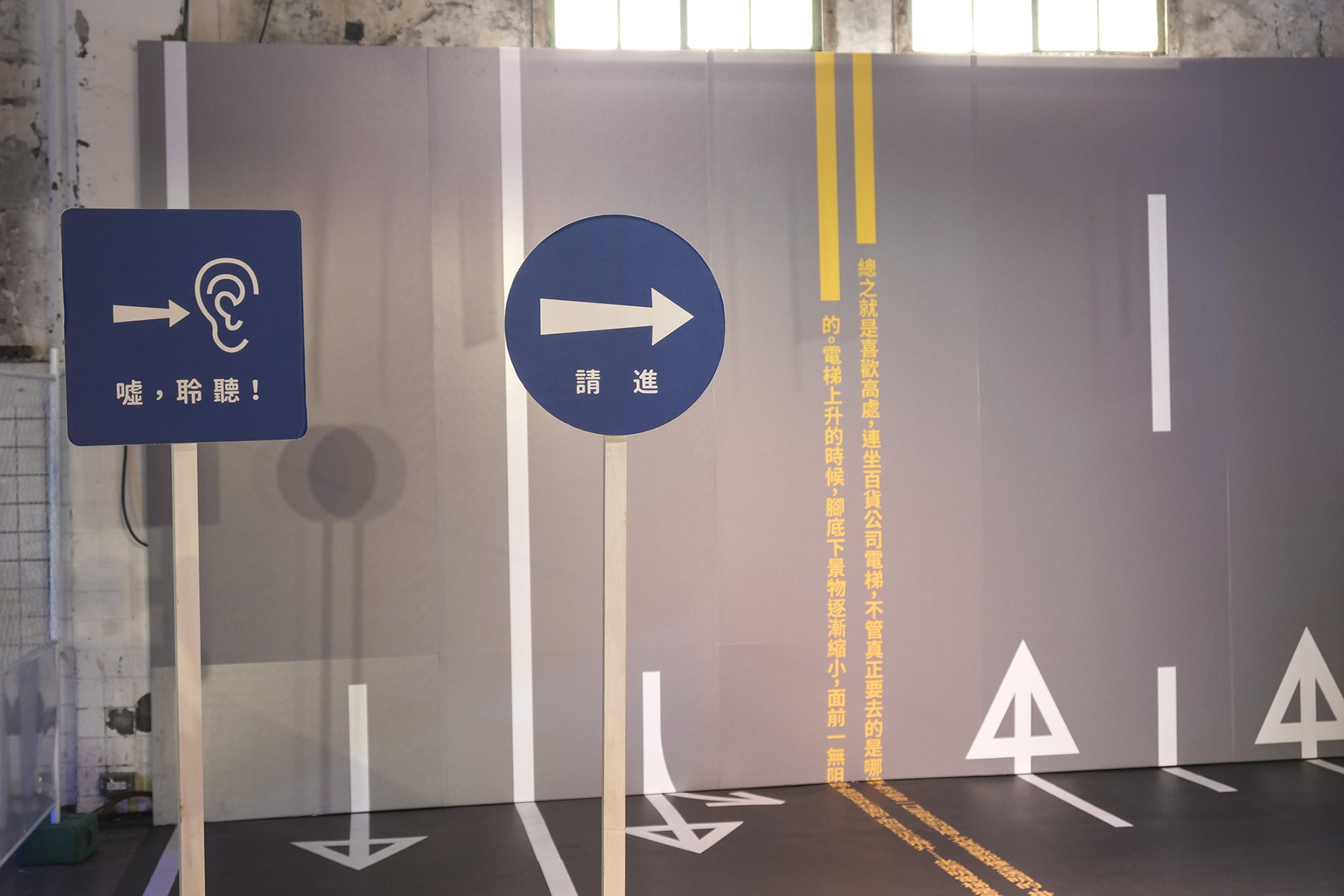將一句句的詩集和散文,化為現實生活中的斑馬線以及道路指標,貫穿於整座朗讀城市。讓大眾於展場中,低頭沿著詩集道路漫步,抬頭能見富有巧思的文字指標,享受閱讀在城市,城市裡閱讀的美好氛圍。