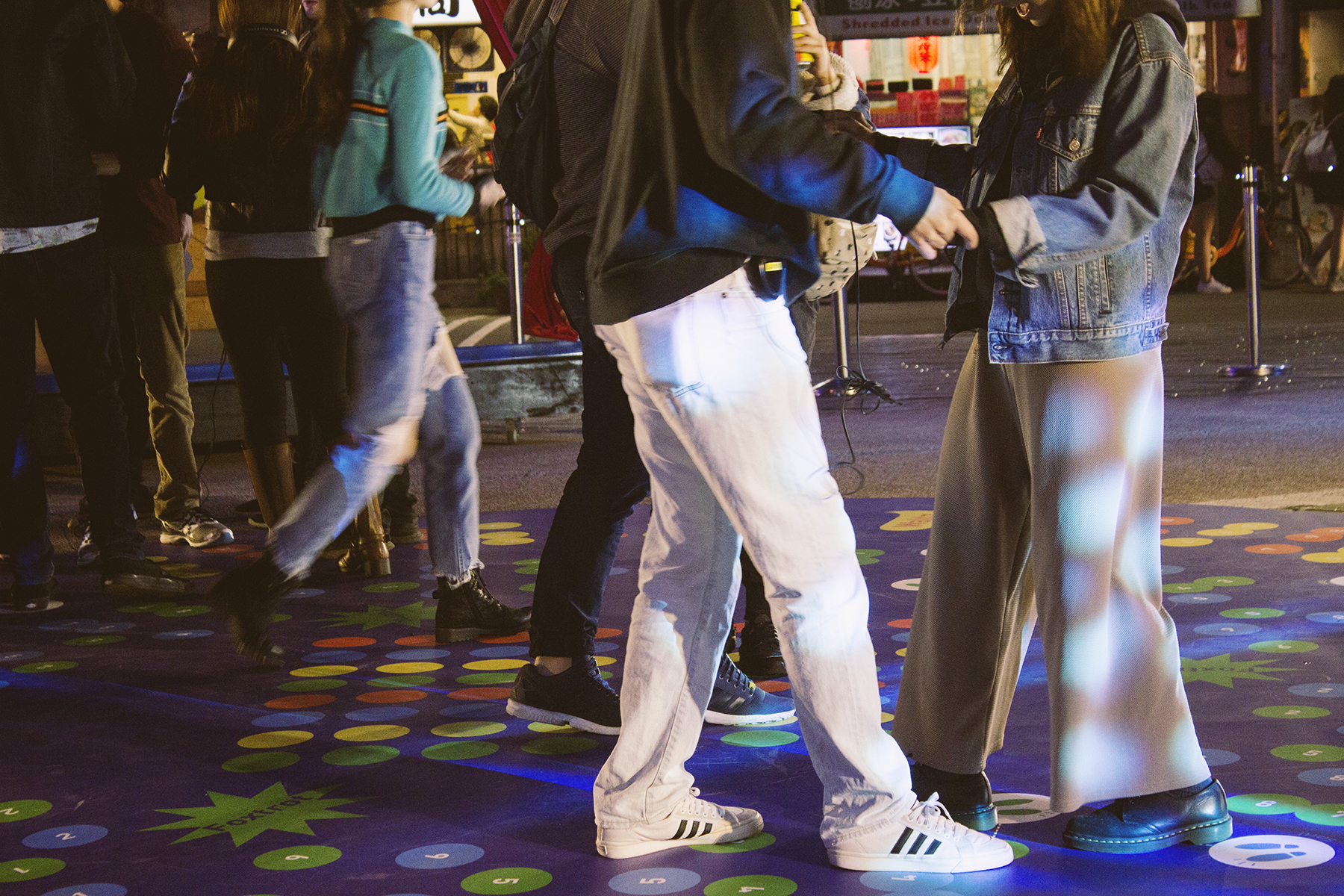 最後,計畫以「Silent Disco 靜音派對」作為閉幕,讓參與者沈浸在 #音樂 流動的同時,踏在代表 #舞蹈 的圓點地板上,或坐在代表#戲劇 的觀眾席上透過方框欣賞跳著 Silent Disco 的人們。將表演藝術以輕鬆歡樂的派對形式融入生活。