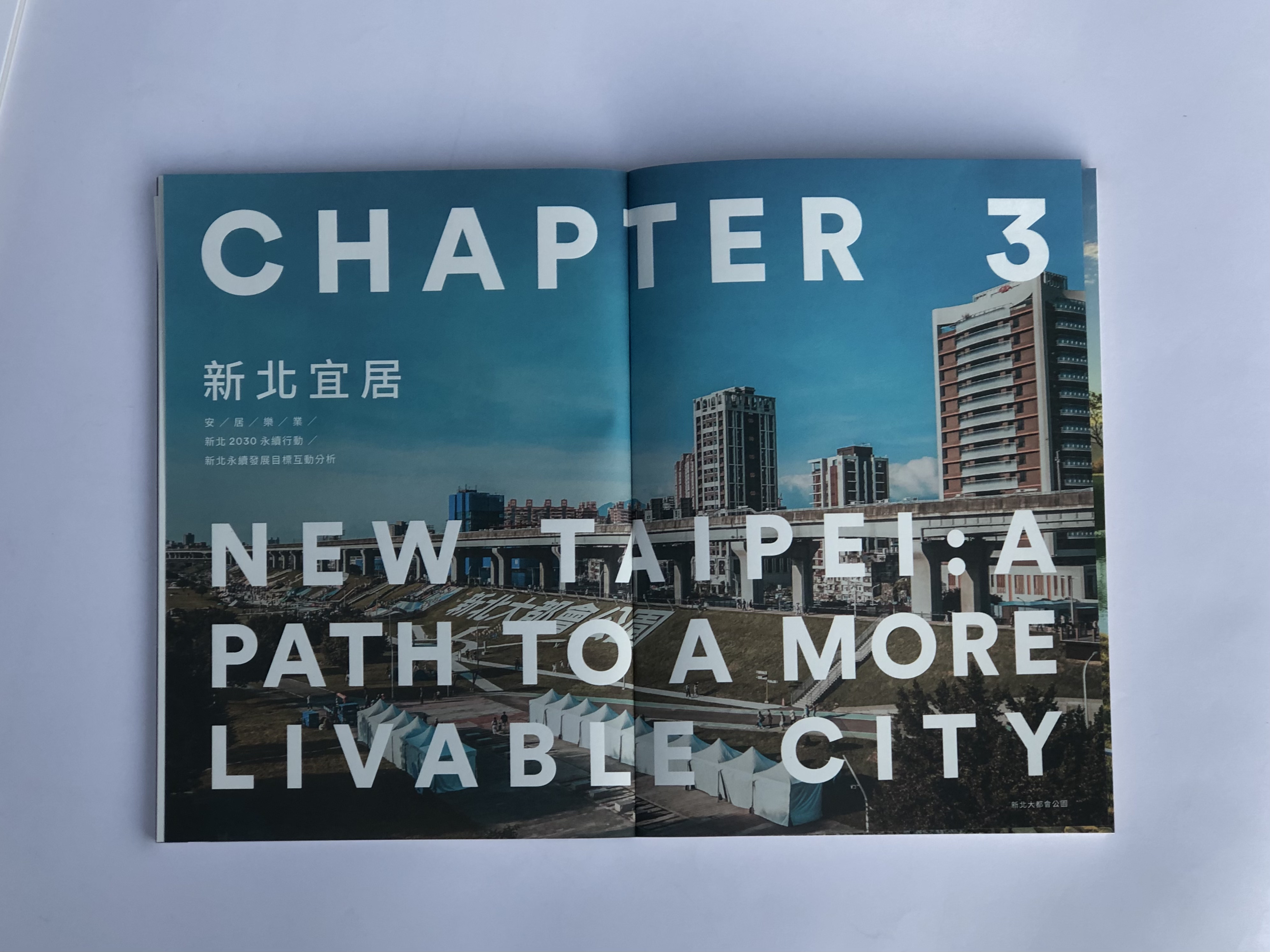 呼應新北市「安居樂業」—顛覆報告書呈現的樣貌:利用生活雜誌、平易近人且帶有生活感的風格進行排版,利用新北景色並帶有溫度的照片帶出每章節主題。其中以「5P」作為核心價值:地球(Planet)、人類(People)、和平(Peace)、繁榮(Prosperity),及夥伴關係(Partnership),結合與民間的案例呈現新北獨特的永續專題案例。