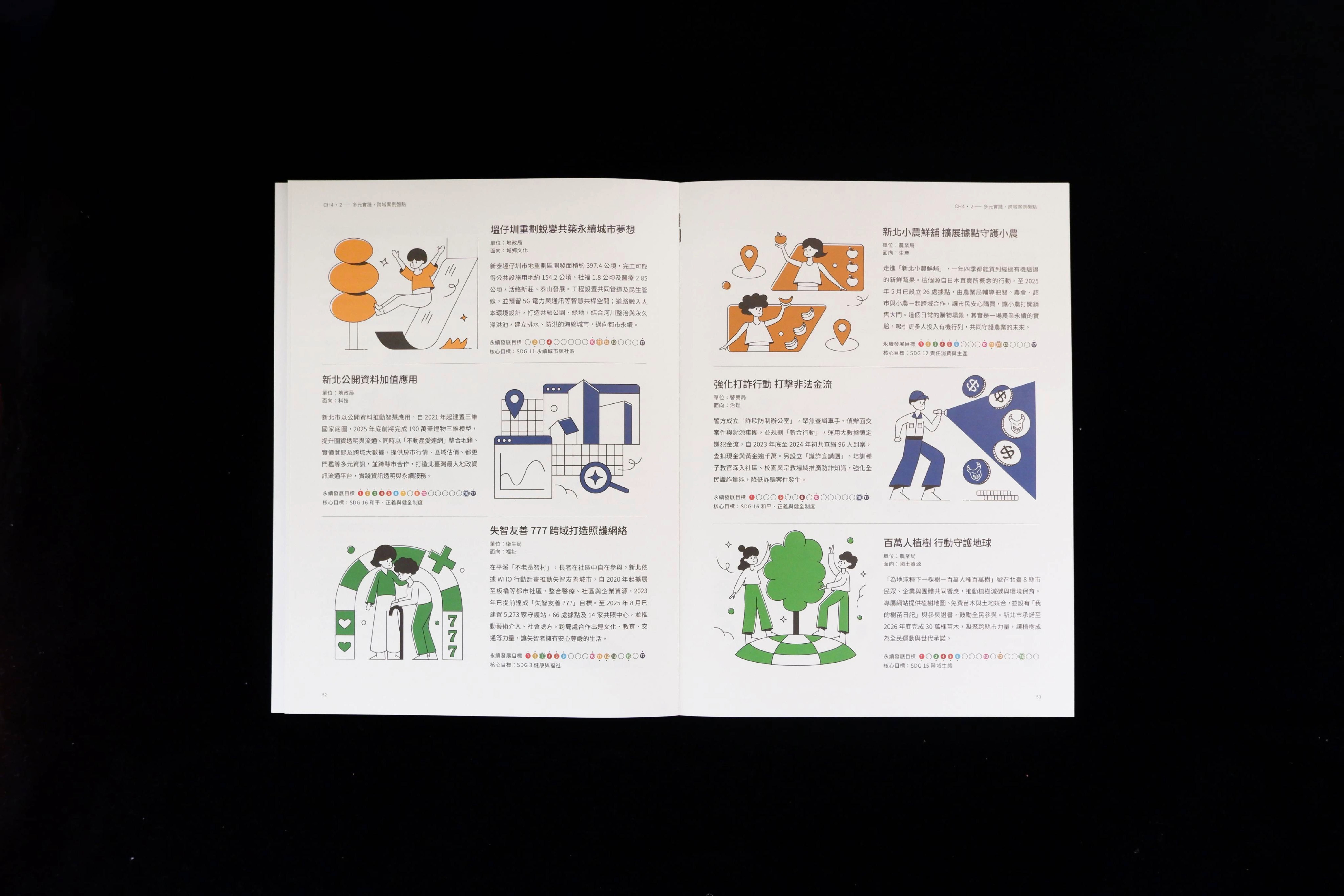 - 2025 年,新北市回歸人本視角,從市民的生活經驗出發,重新詮釋「以人為本」的城市永續樣貌,聚焦安心居住、樂業發展與低碳生活,呈現跨局處協作與全民參與的治理成果。
