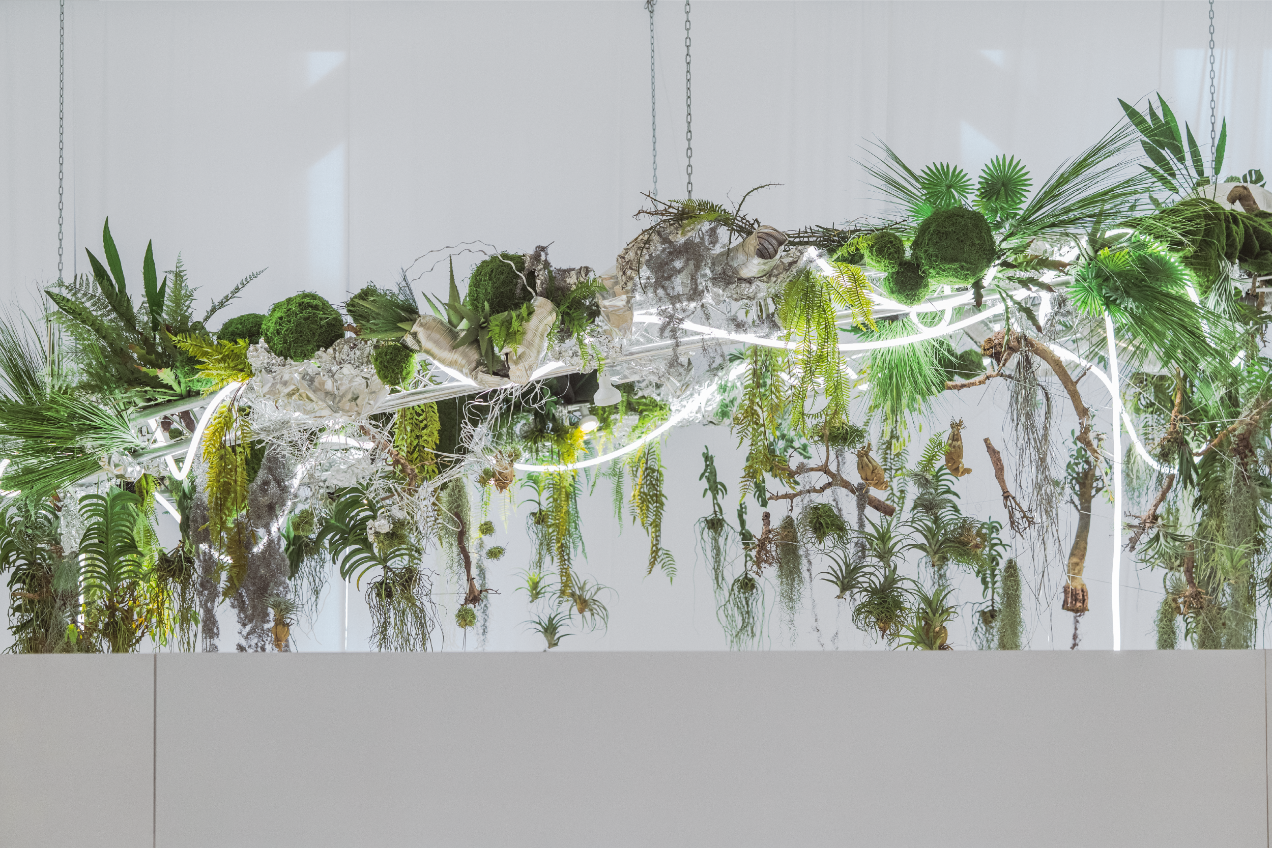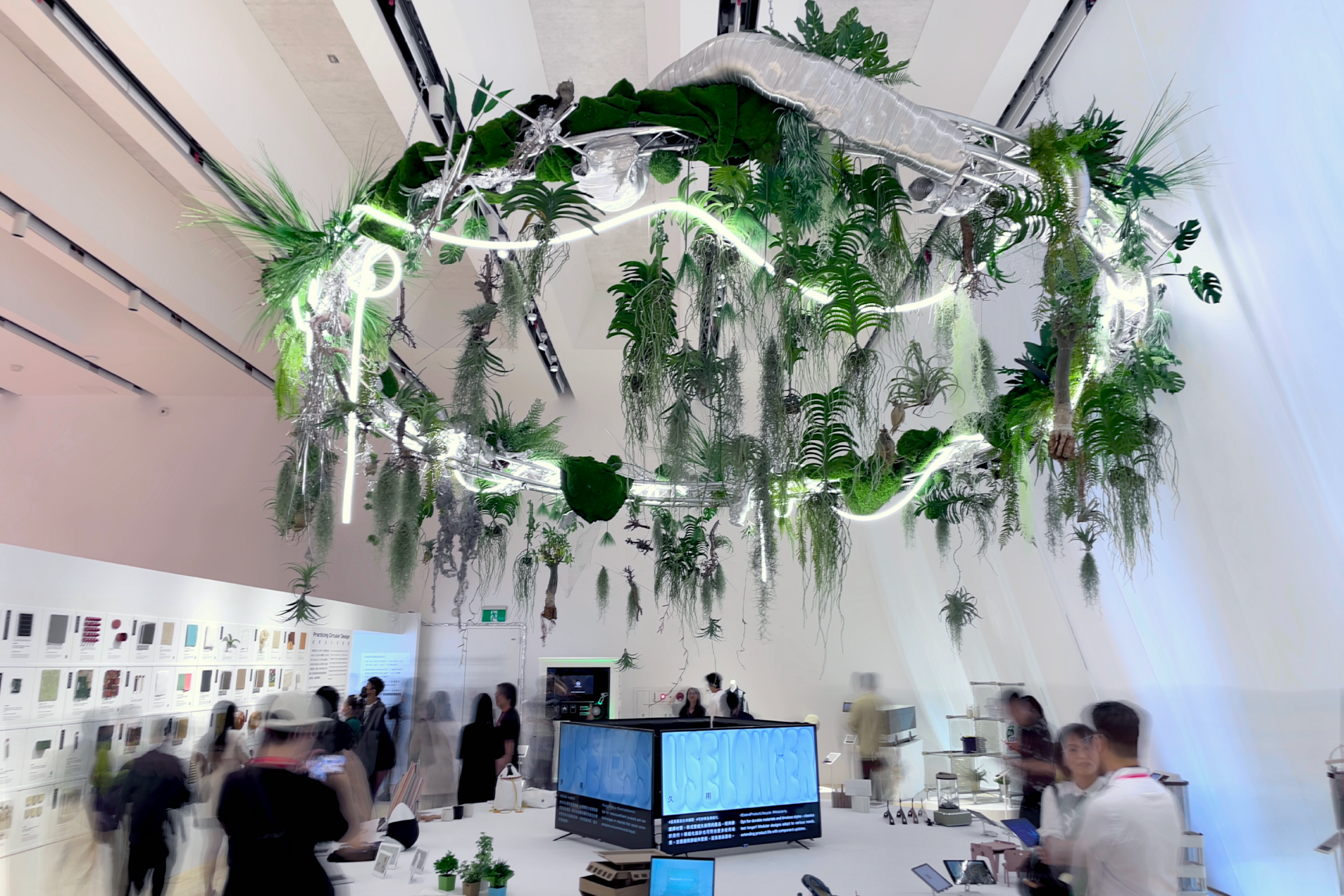 如今,永續發展的迫切性更顯強烈,我們更應該在環境、經濟、社會之間找到平衡。場內除了各式循環設計案例,特別與植物規劃品牌「感官花子」合作,運用富有生命力的氣根植物,創作大型環狀生態裝置,不只是提醒有機生命的存在,更代表希望與願景。期待人們在追求經濟發展之餘,也能兼顧環境永續,與地球共好。