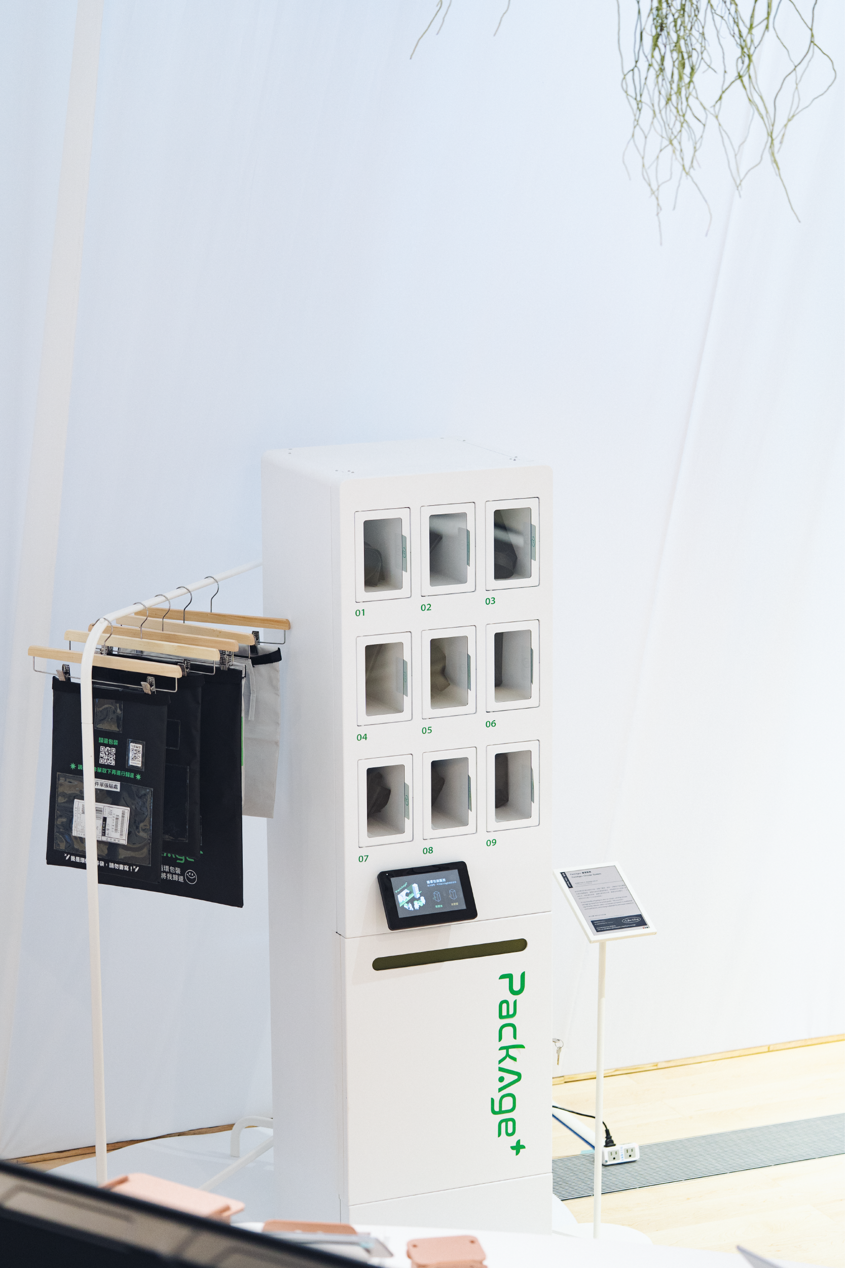 - 展場設備以借或租代買,大面積布料採用南亞塑膠環保再生品牌「SAYA 餘創」生產的寶特瓶回收紗餘料。