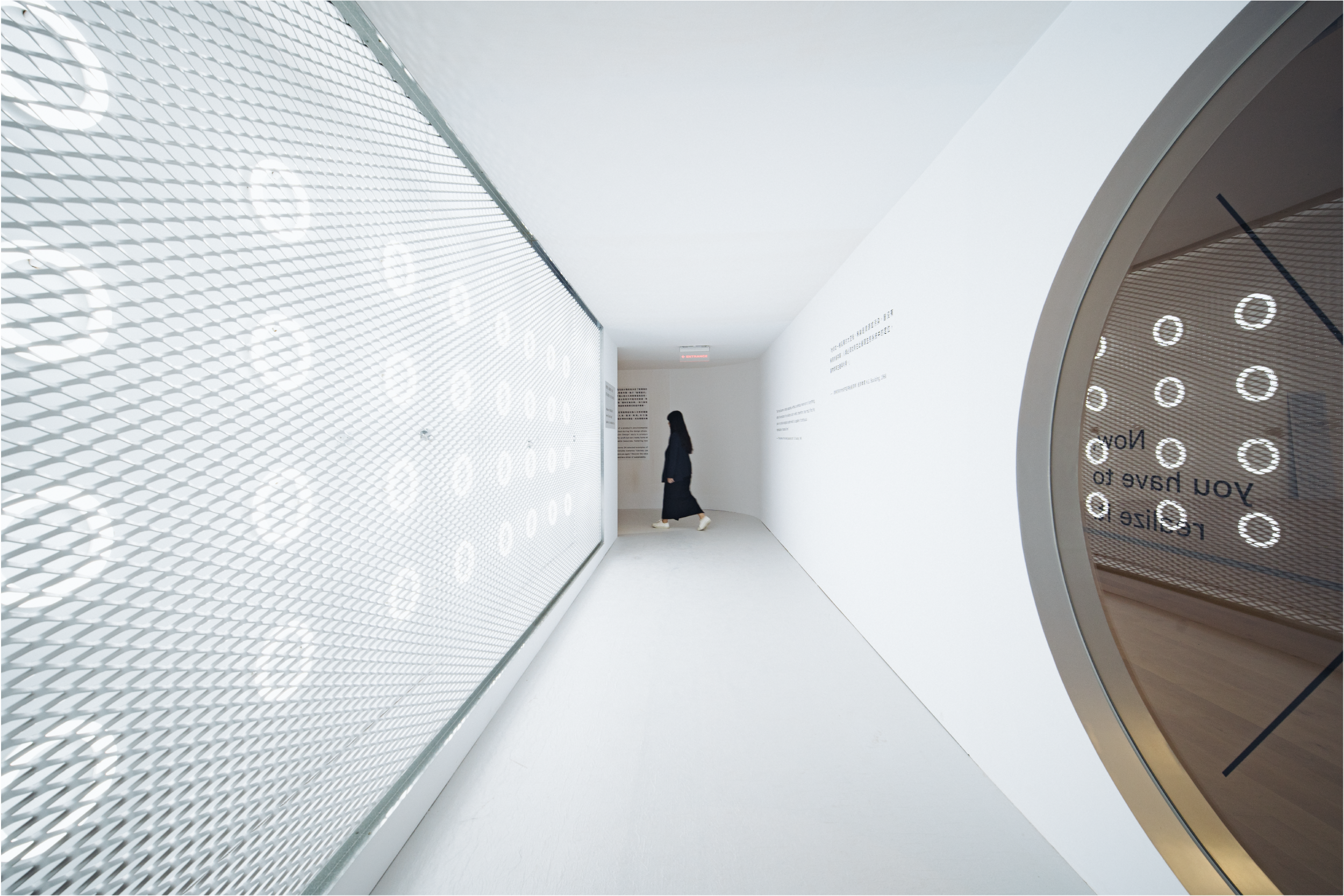福爾摩沙 O 號以「循環設計」為系統,航向永續發展的生命續航。以經濟學家 K.E. Boulding 撰寫的《即將到來的地球宇宙⾶船經濟學》為靈感,用金屬質感與白色調打造太空艙空間,於入口處利用 80 個環形燈泡點亮太空光廊,象徵民眾登入太空艙的空間。