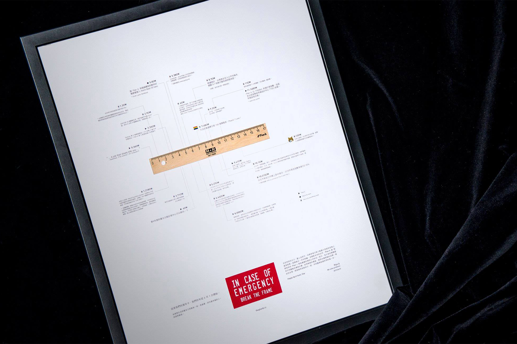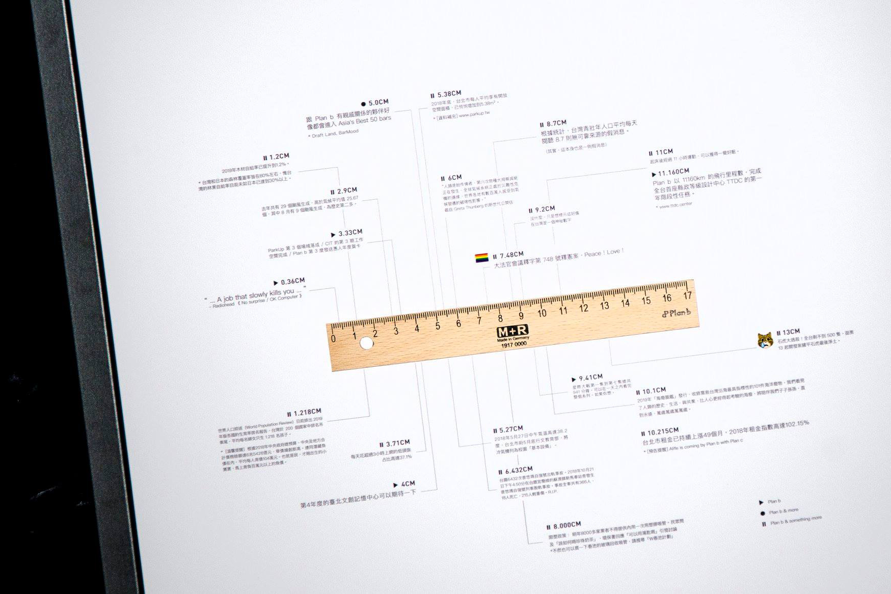 尺,象徵我們願繼續扮演好朋友們心中的另一把尺。周遭的議題,經由尺的量化,則代表著 Plan b 總是會用不一樣視角,看待這個世界的每分每寸,適時地提出解決問題的備案計劃 (solution)。