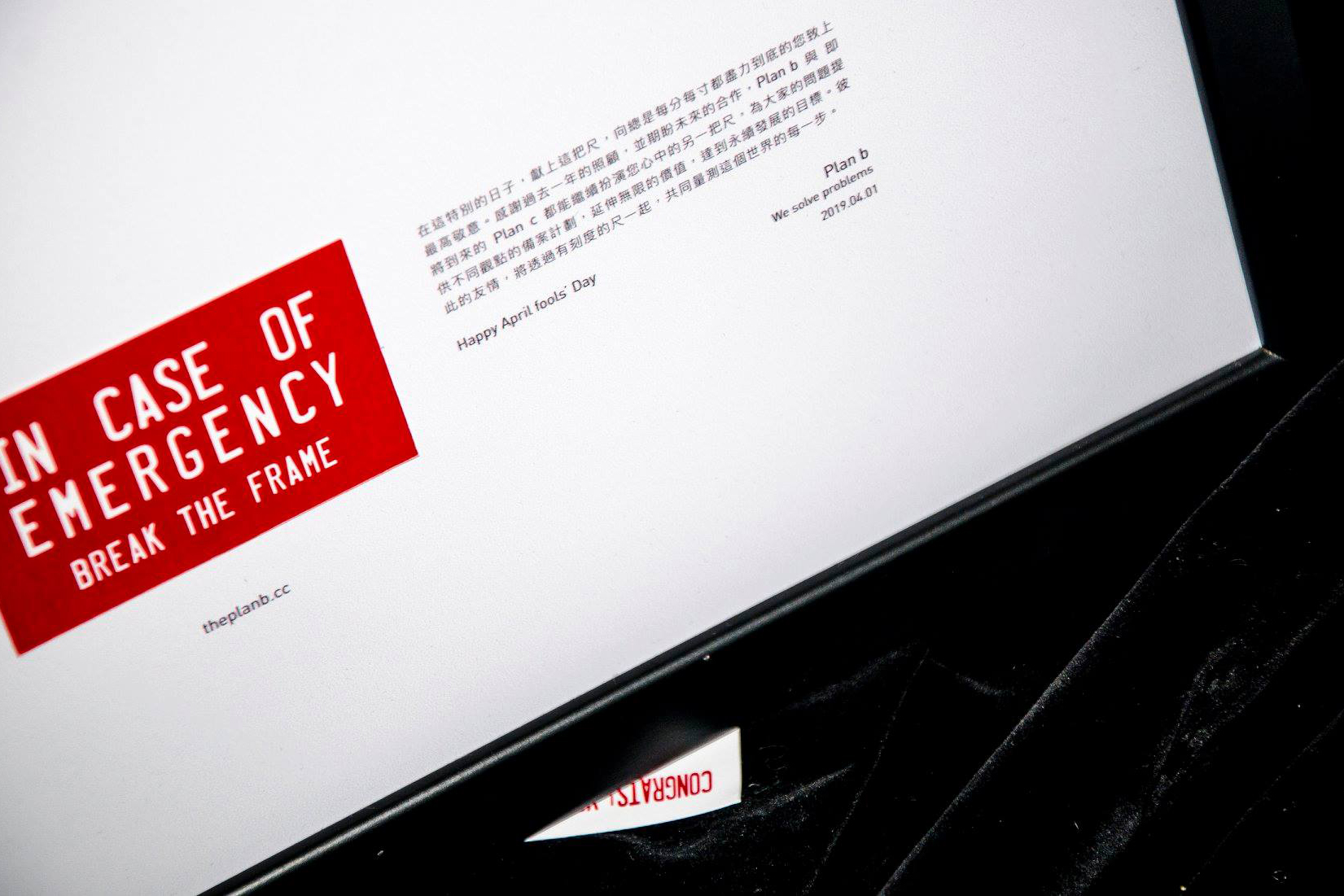 「這是 Plan b 的賀年卡,Plan b 的年從 4/1 開始。」