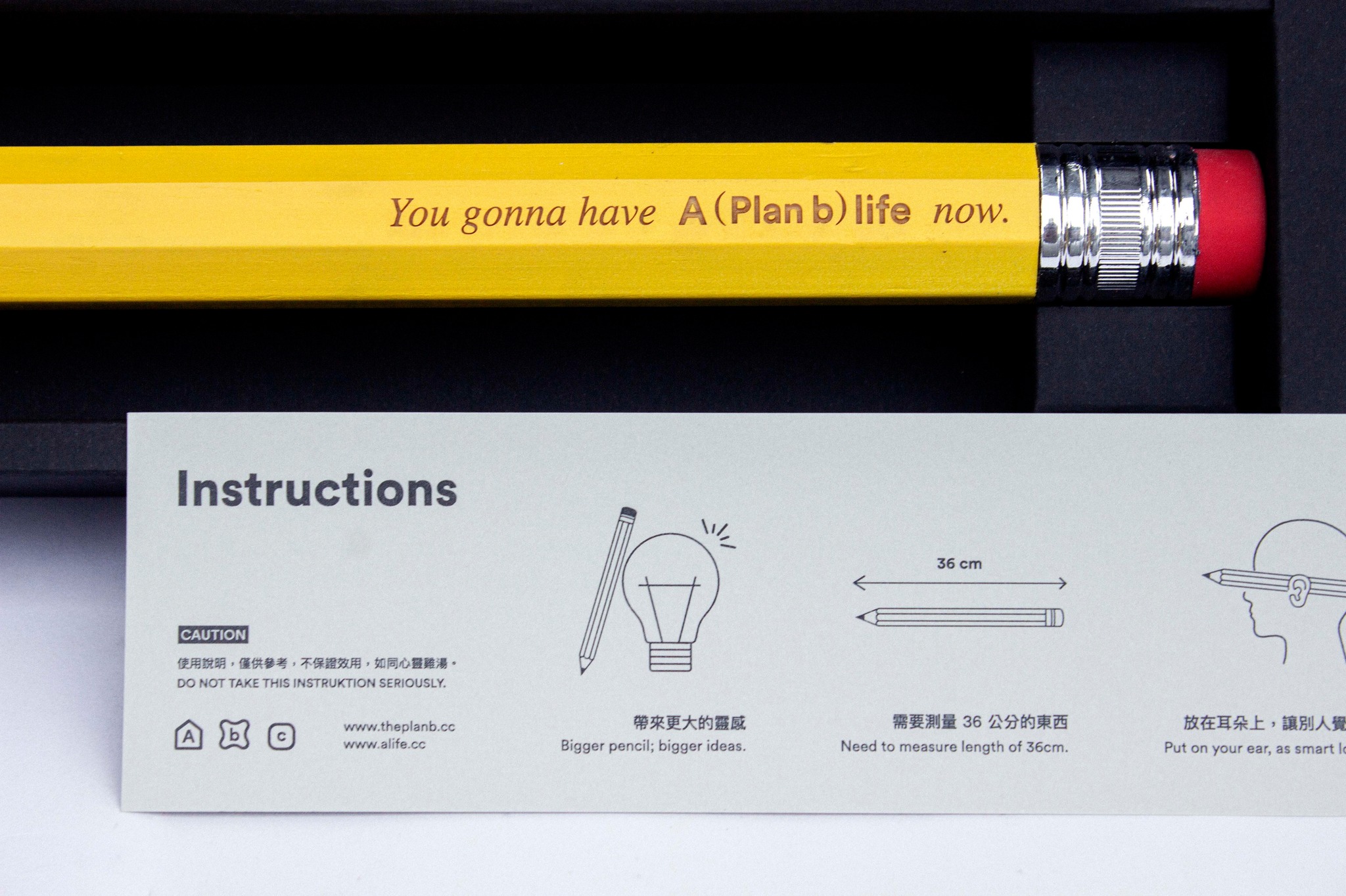 一支鉛筆,是可以啟動任何創意與和平對話的基礎工具。也許是速記下一個企劃的靈感、畫下一張設計圖、寫下一段經典文案、一首永傳歌詞,又或是簽下雙邊合議的契約、令人淚流滿面的信、一段精彩絕倫的宣言 … Big pencil for even bigger idea. 這次 Plan b 與 Alife 團隊共同企劃的愚人節禮,如同永續發展思維一樣,需要不斷思考和創新。透過這具有可再利用性的文具,為我們帶來許多靈感,並且在過程中尋找可持續性的解決方案。象徵著 Plan b 每次適時提出解決問題的備案 (we solve problems),也代表著透過 Alife ,每一個人都能將生活過程想要的樣子 (live by choice)。