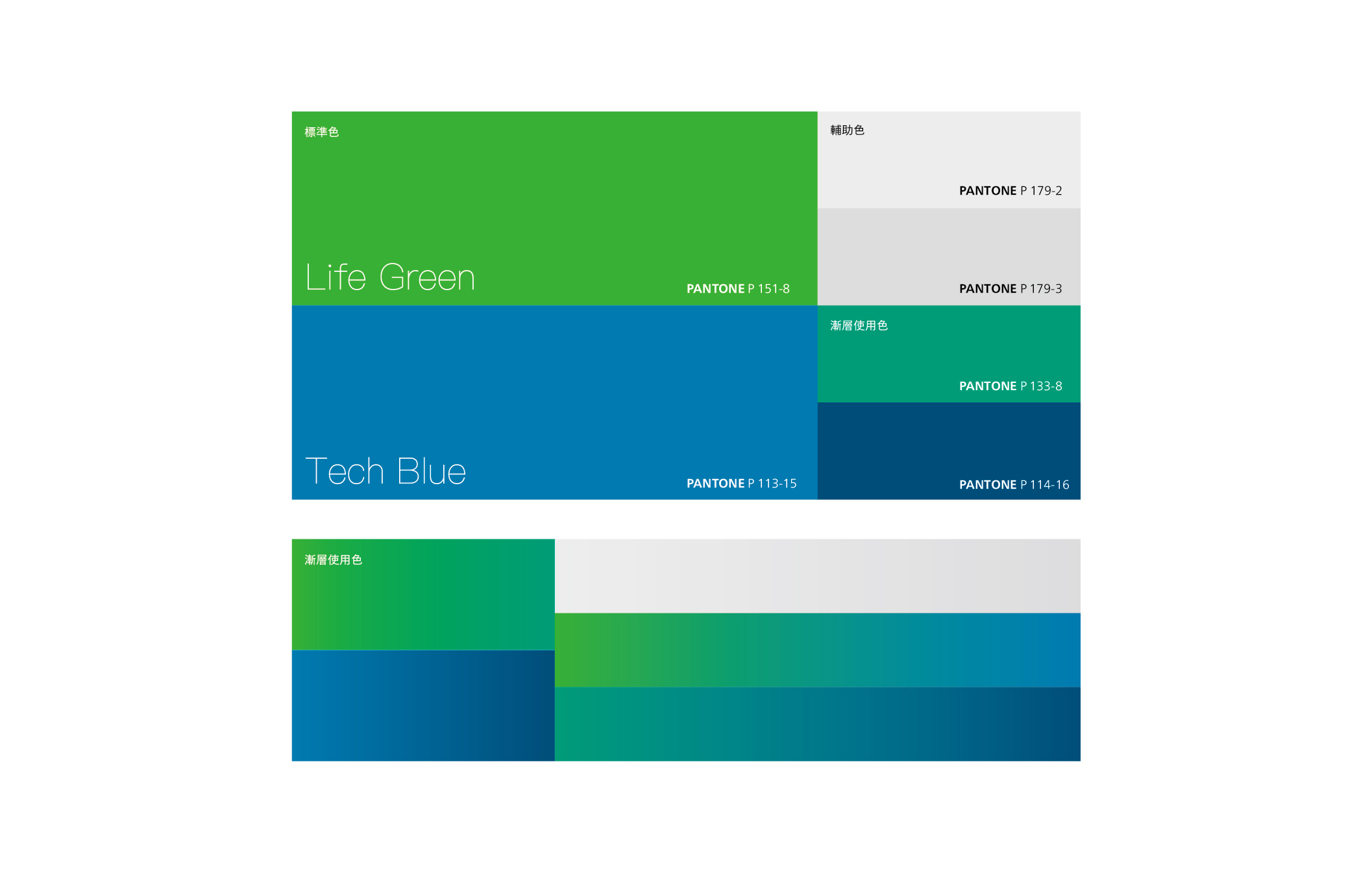 - 藍綠雙色的明度與彩度重新調和,色彩表現更一致,符合各種深淺明暗背景應用。