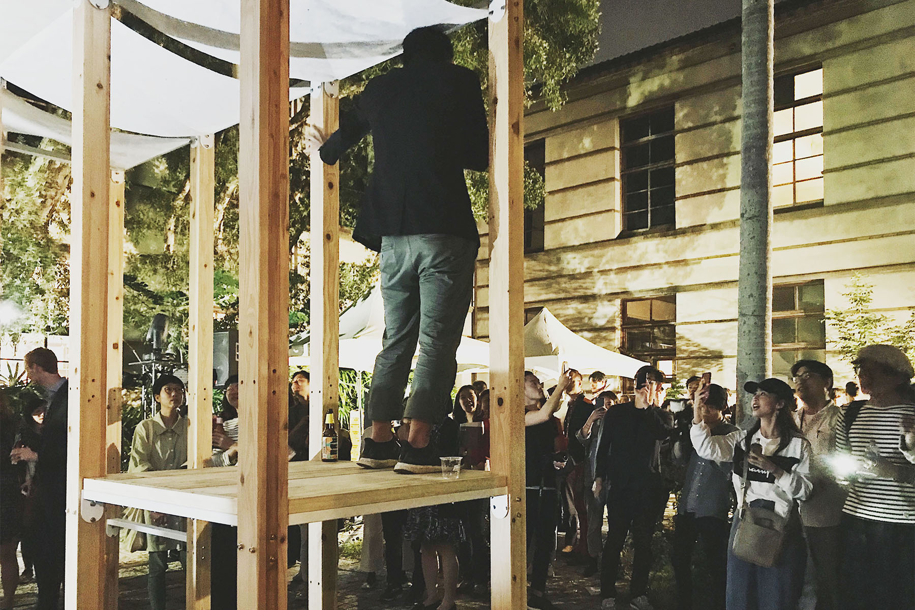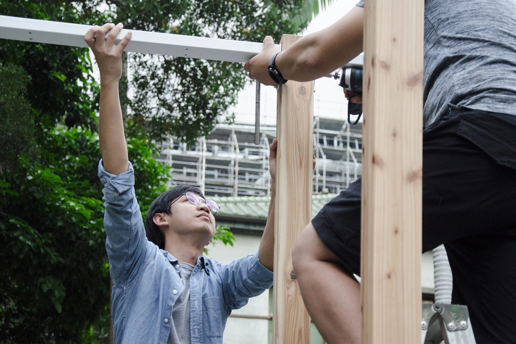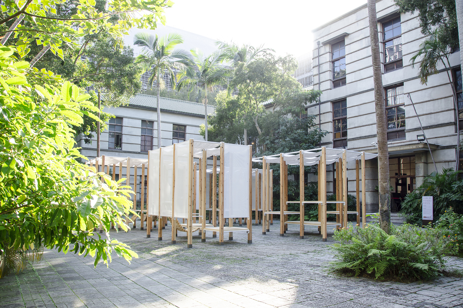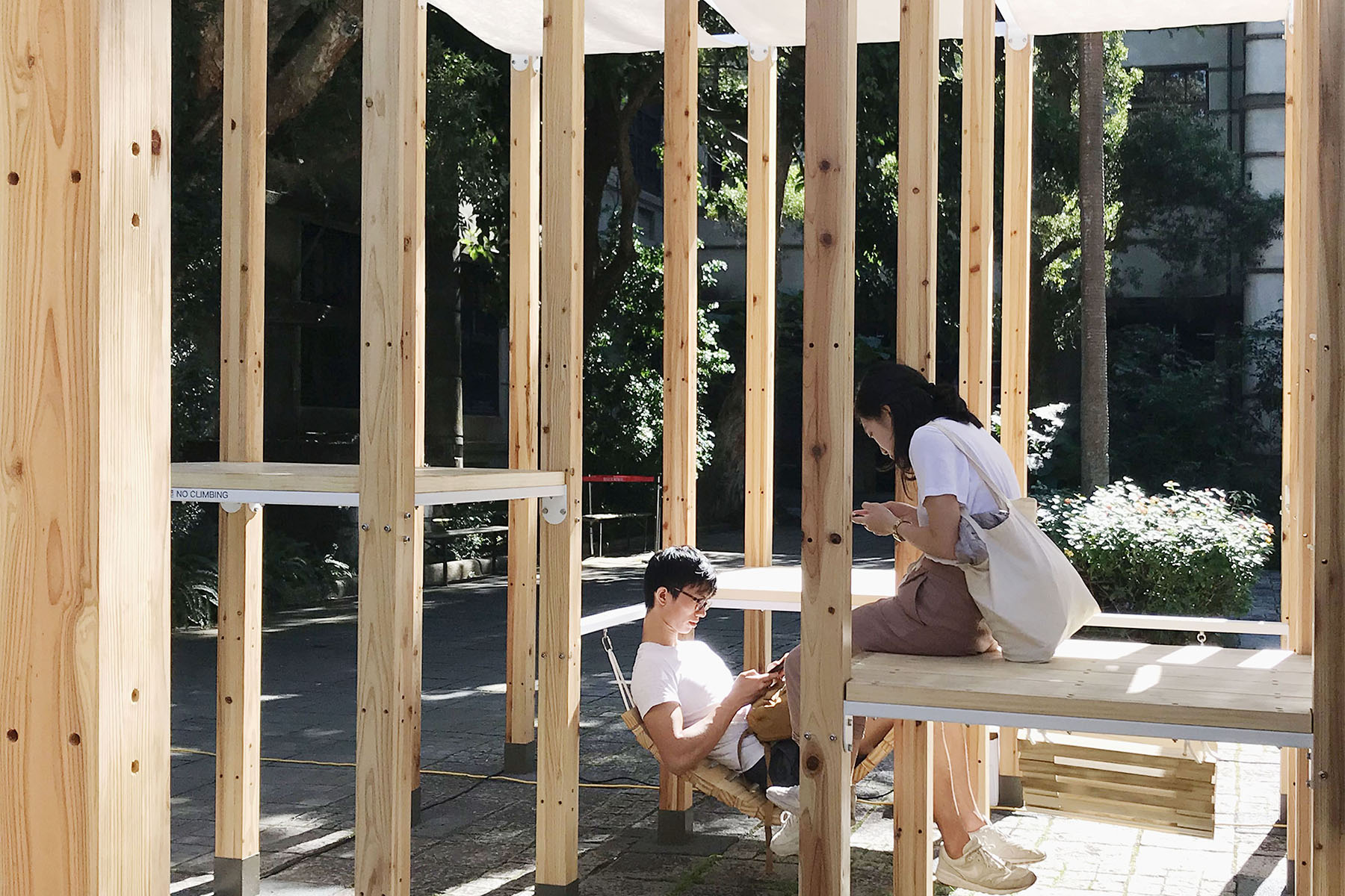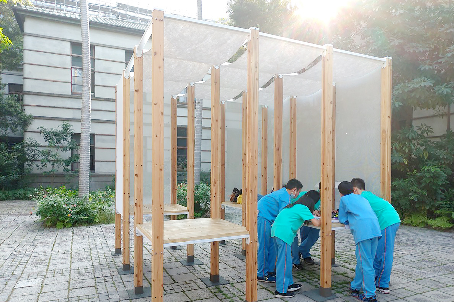 搭配組件的設計發展出如戶外模組傢俱系統一般,可以自行拆裝的模組化裝置系統。各類錯落在不同高度的平台裝置,回應各種使用需求,產生出多種配置變化。這種「變動」的特性,使得空間的構成及常時的運用能保有自我調整的彈性,達到此場域最迫切的匯聚任務。