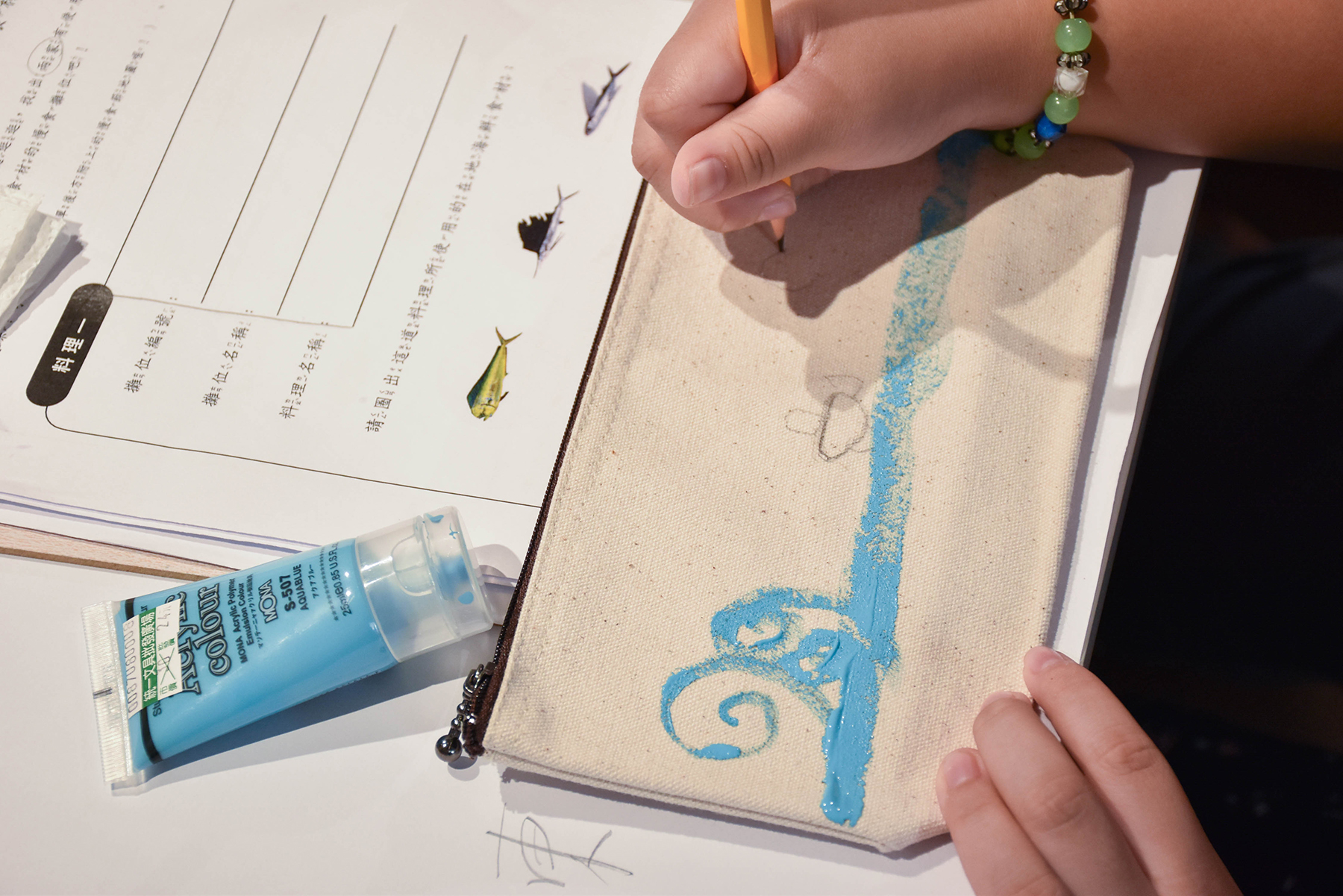 將市集中的飲食體驗轉化為視覺創作靈感揮灑於空白筆袋上,呈現每個小小設計師的獨特美感。